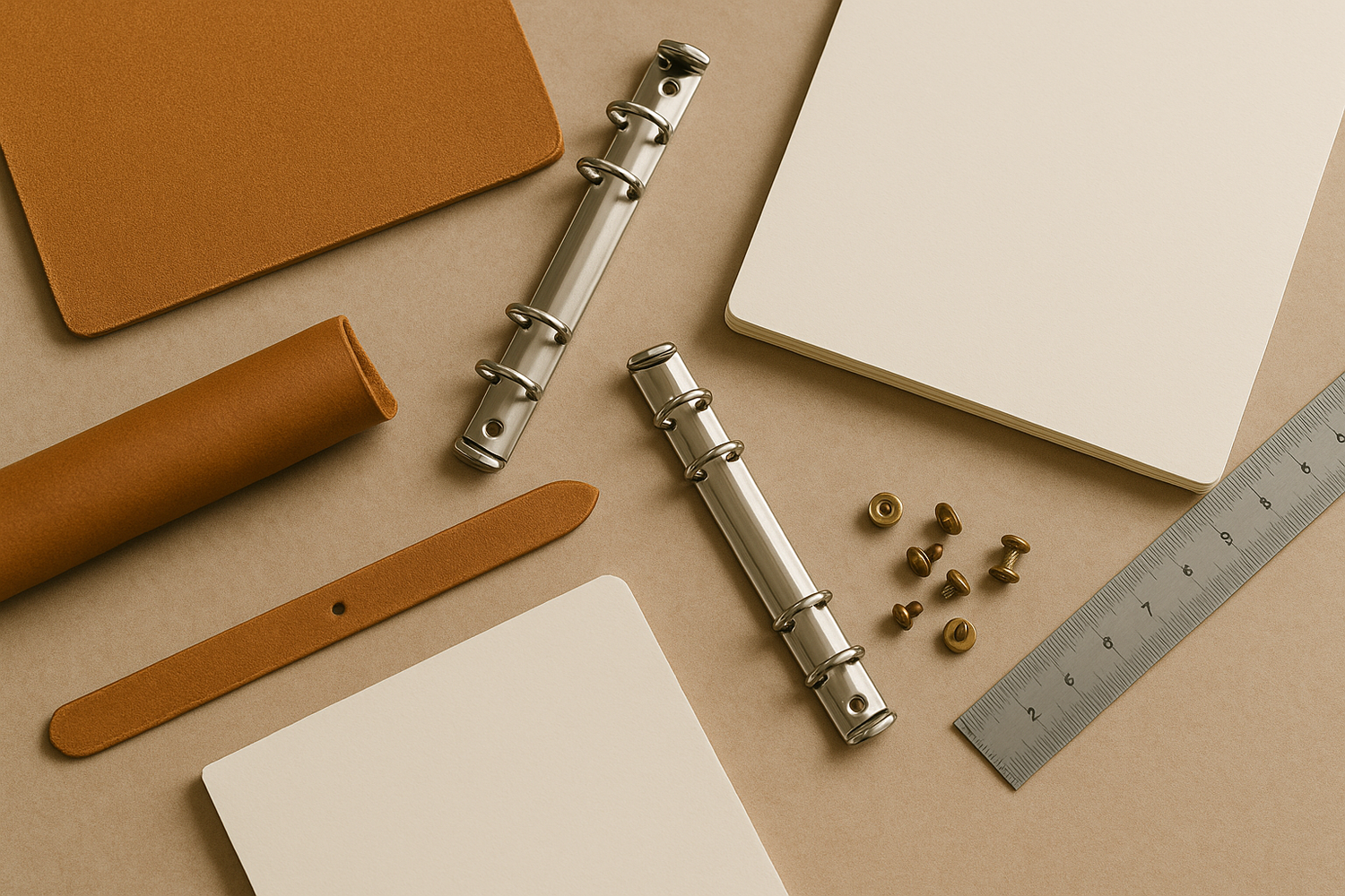 Vi arbetar med vegetabilgarvat läder – ett material som andas hållbarhet. I vår verkstad tillverkas allt från nyckelringar till journalpärmar, och varje stygn bär spår av handens arbete och omsorg.